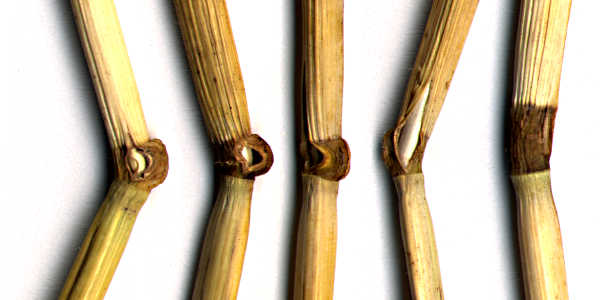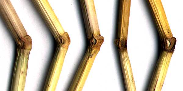 FORMATION NODES I think I can safely say that every laid barley plant in this formation had node deformities of some sort. All images on this page are actual barley stalks scanned on a flatbed scanner at 300 pixels per inch (118 pixels per centimeter), so the magnification is constant among all images. Here is a scan of rulers that will open in a new browser window. You can use it as a scale. The following three scans are from the same five plants collected
