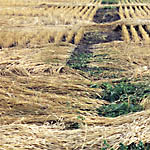 | Detail showing how crop is laid near the base of the stalks. Lay of stalks |